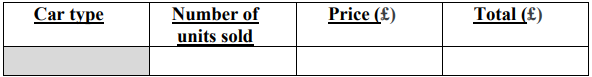 You need to use data-validation to retrieve any car (and its price) as a list for the cell presented in the shaded region above. The price (£) should be retrieved from the following table using an XLOOKUP formula. The number of cars (N° of units) should not exceed THREE. The Total (£) column should be calculated using the following Excel formula: