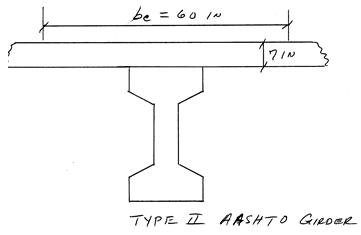 Problem 3. A composite bridge is constructed out of simply supported precast, pretensioned ASSHTO Type II (see the pdf file containing section properties data) beams and a cast-in-place reinforced concrete slab, as shown below. The tendons are harped at 0.4L. Check stresses at transfer at critical sections and at slab placement. Later we will come back to this problem and determine critical stresses at full service load and nominal moment capacity and the cracking moment for the composite section.
