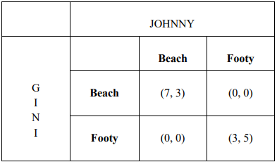 4. A couple Gini and Johnny are trying to decide what to do once the lockdown is over. Gini would rather go to the beach, but the husband would rather go to the footy match. Both would prefer to go to the same place rather than different ones. The game is as follows: