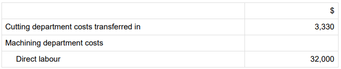 During March 200 units were completed and transferred to Administration for dispatch. Units transferred from the Cutting Department to the Machining Department were charged to Machining at $44.50 each. Direct labour costs in March for the Machining department were $32,000.