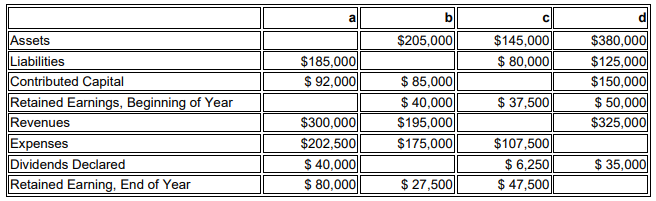 Exercise 4 Compute the missing amounts in each of the following independent cases: