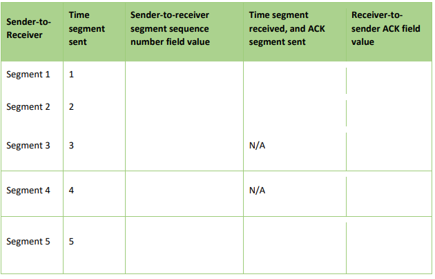 a. Give the sequence numbers associated with each of the five segments sent by the sender