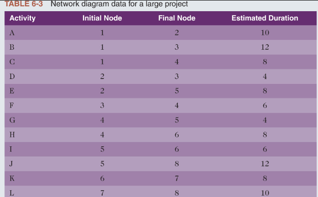 2. Create Final Project Closeout Report based on templates from the Schwalbe's textbook. Use as project information the data below, and prepare a professional looking Final Project Closeout Report for concluding the project. Assume the project is finished on time (for 6 months) and on budget ((total project cost $ 120 K) as it was initially planned. This task should be integrated in one MS Word file and should include: 2.1 Final report with executive summary, review analysis, and recommendations 2.2 Project Deliverable 2.3 Client acceptance form 2.4 Lessons learned report. Ex.3 Consider Table 6-3. All duration estimates or estimated times are in weeks, and the network proceeds from Node 1 to Node 8. (Note that you can easily change this table to create multiple exercises.)