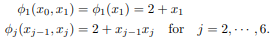 φj (xj−1, xj ) = 2 + xj−1xj for j = 1, · · · , 6