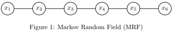 of random variables X = {x1, x2, x3, x4, x5, x6} that each take binary values xj ∈ {−1, +1} for j = 1, · · · , 6. The clique potentials are