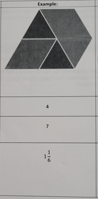 5) If a shape has an area of t triangles, write an expression for its area in hexagons.