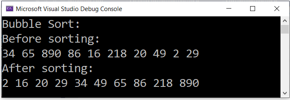 The method sort() implements Bubble Sort. We can sort in increasing or decreasing order. Here we wish to sort in increasing order. The method sort() takes as parameter a Comparable function. Comparable is a type alias for the standard function template std::function<bool(int, int)>. That is, Comparable is a Boolean function that takes two integer values and returns true, if the left integer goes before the right integer. Programmatically, the left integer goes before the right integer if the value of the left integer does not exceed the value of the right integer.