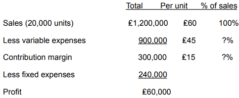 3. Assume that sales increase by ₤400,000 next year. If cost behaviour patterns remain unchanged, by how much will the company’s profit increase. Use the CM ratio to determine your answer.