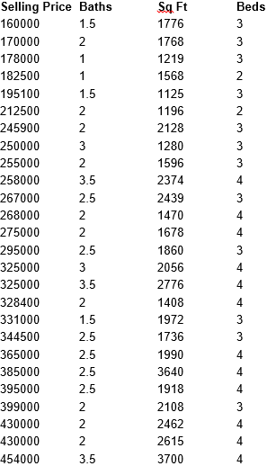 Real Estate One conducted a recent survey of house prices for properties located on the shores of Tawas Bay. Data on 26 recent sales, including the number of bathroom, square feet and bedrooms are below.