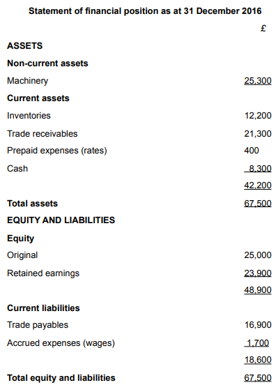The following is the statement of financial position of WW Associates as at 31 December 2016: